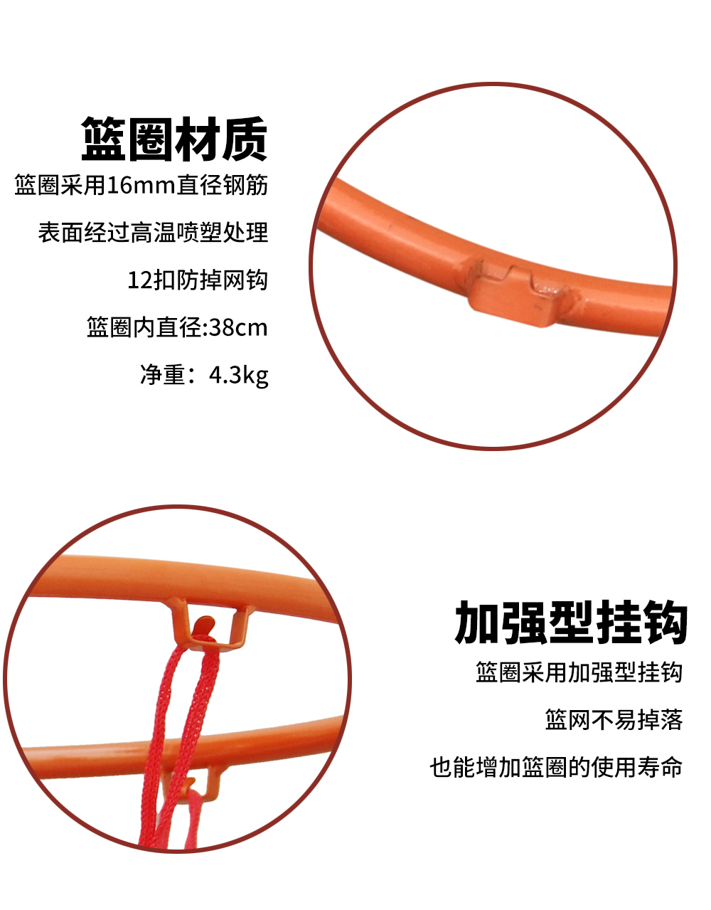 PSR38 加強型內(nèi)徑38cm籃球圈雙彈簧實心16mm